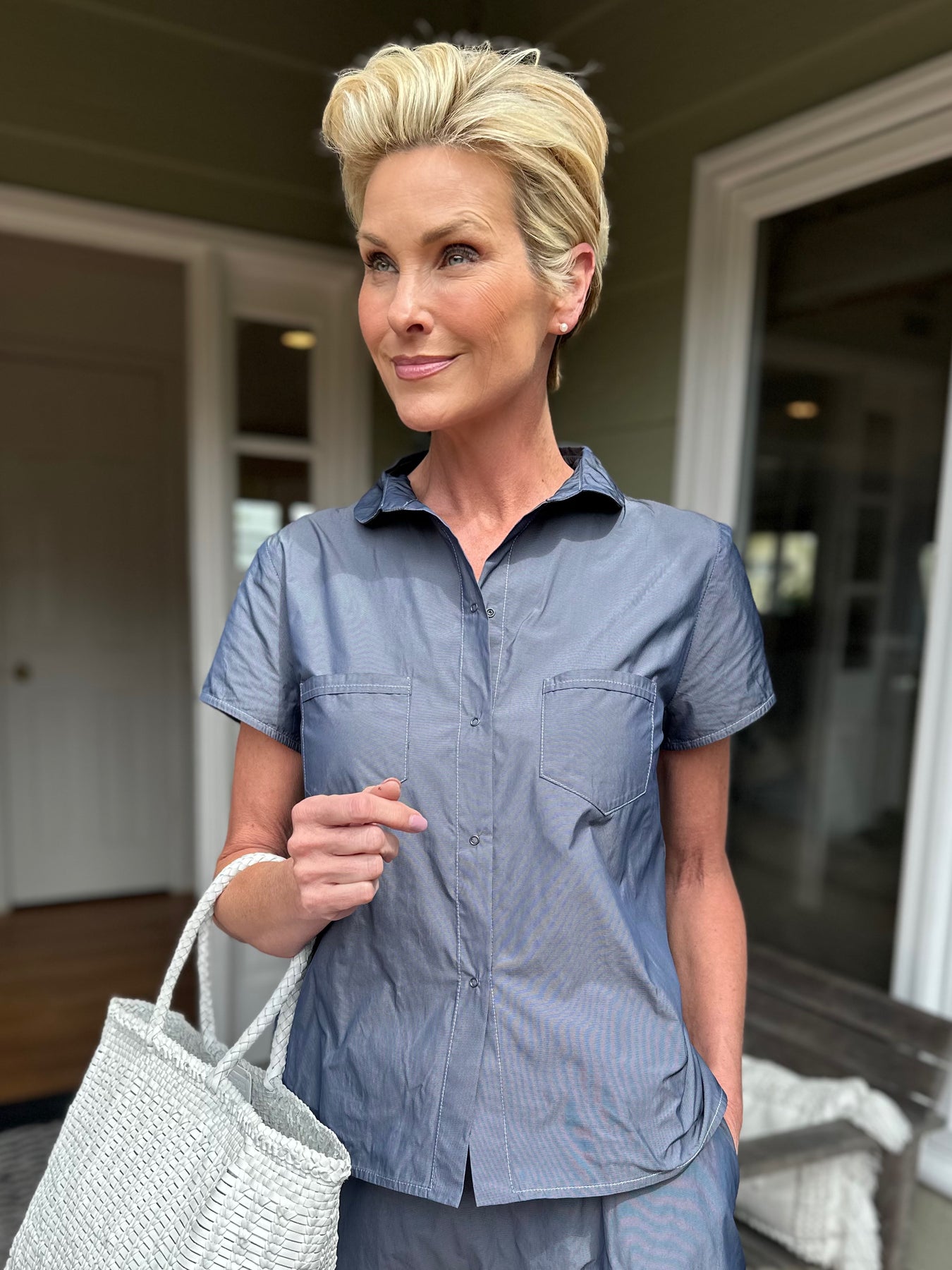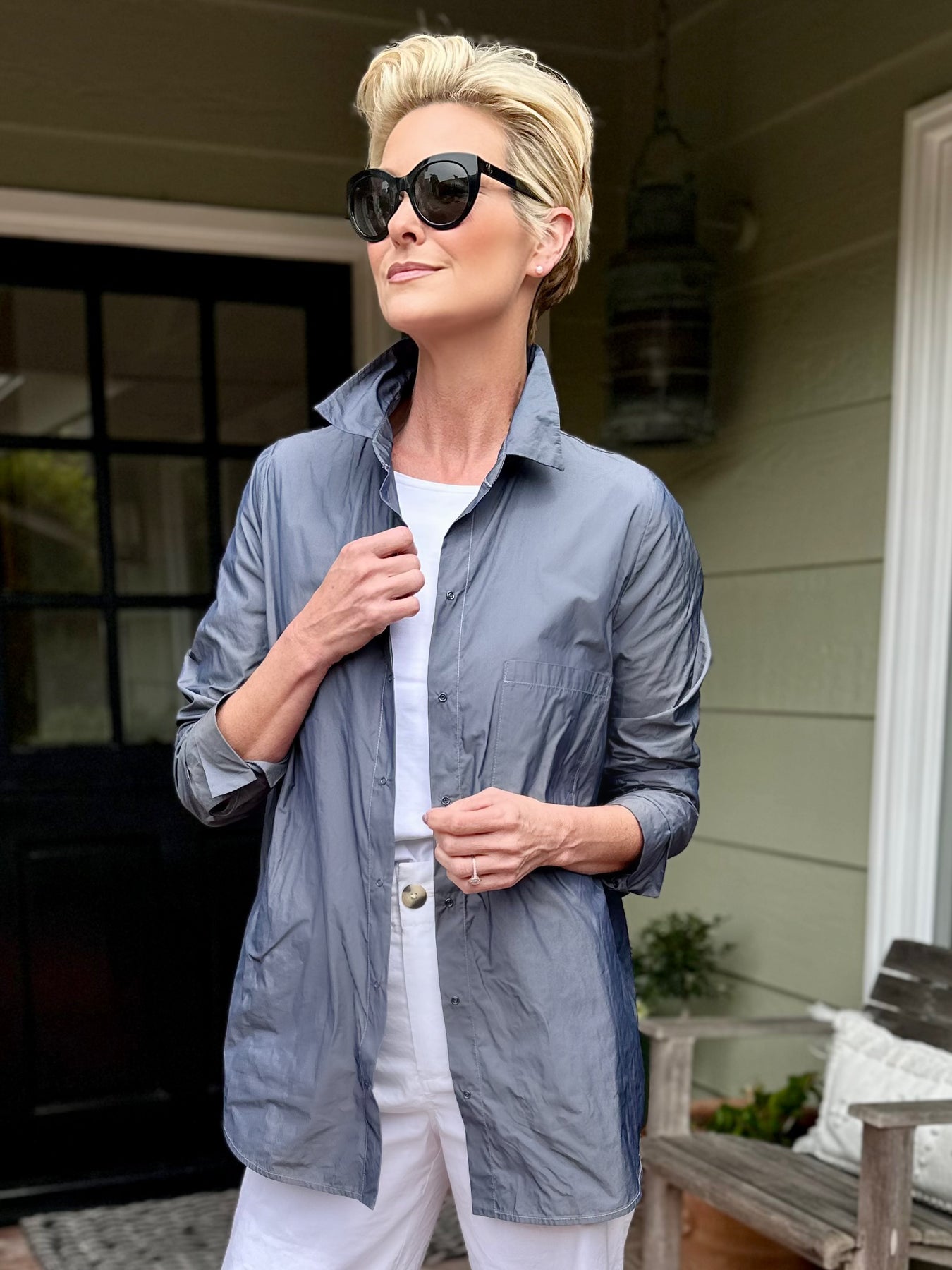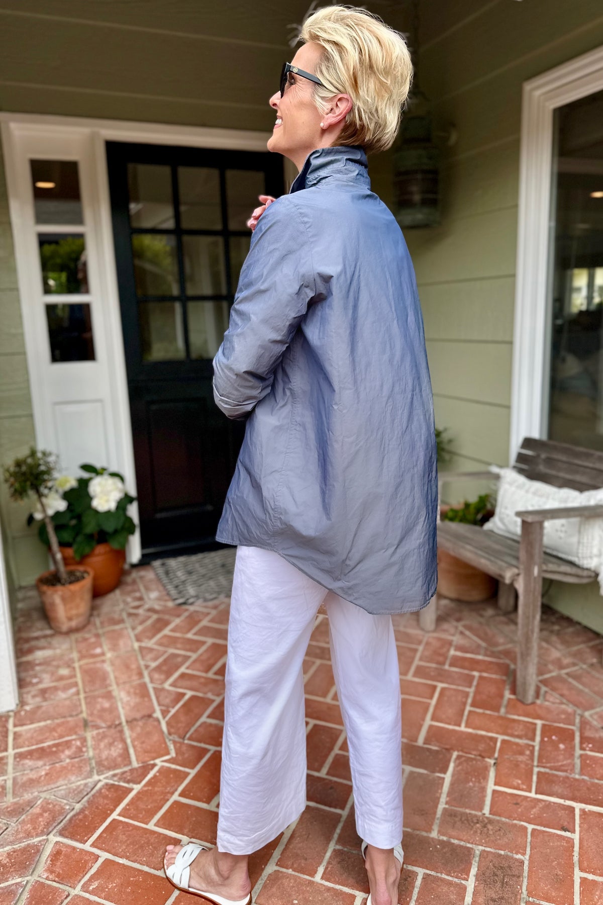 The Katharina Hovman collection from Germany is casual and sporty, but it also has a subtle elegance and shine. Hovman's signature fabric, featherweight tissue taffeta, sets her apart from any other collection. Nicknamed "Travel Taffeta," the weightless fabric finds space in the smallest bag and is ready to wear when unfolded. Please do not iron or steam, seriously! Her fabric is comfortable, easy to care for, and comes in the most gorgeous colors, and her styles are for every day and every occasion!