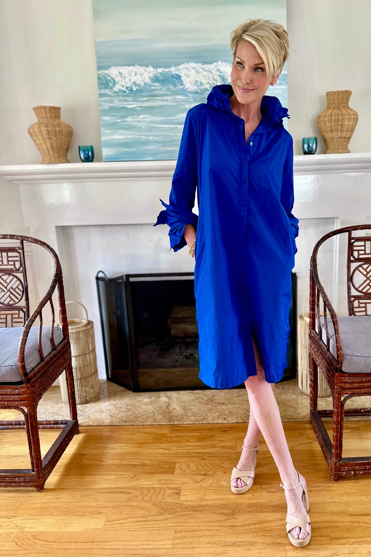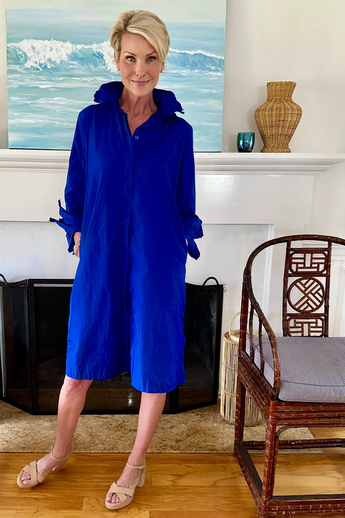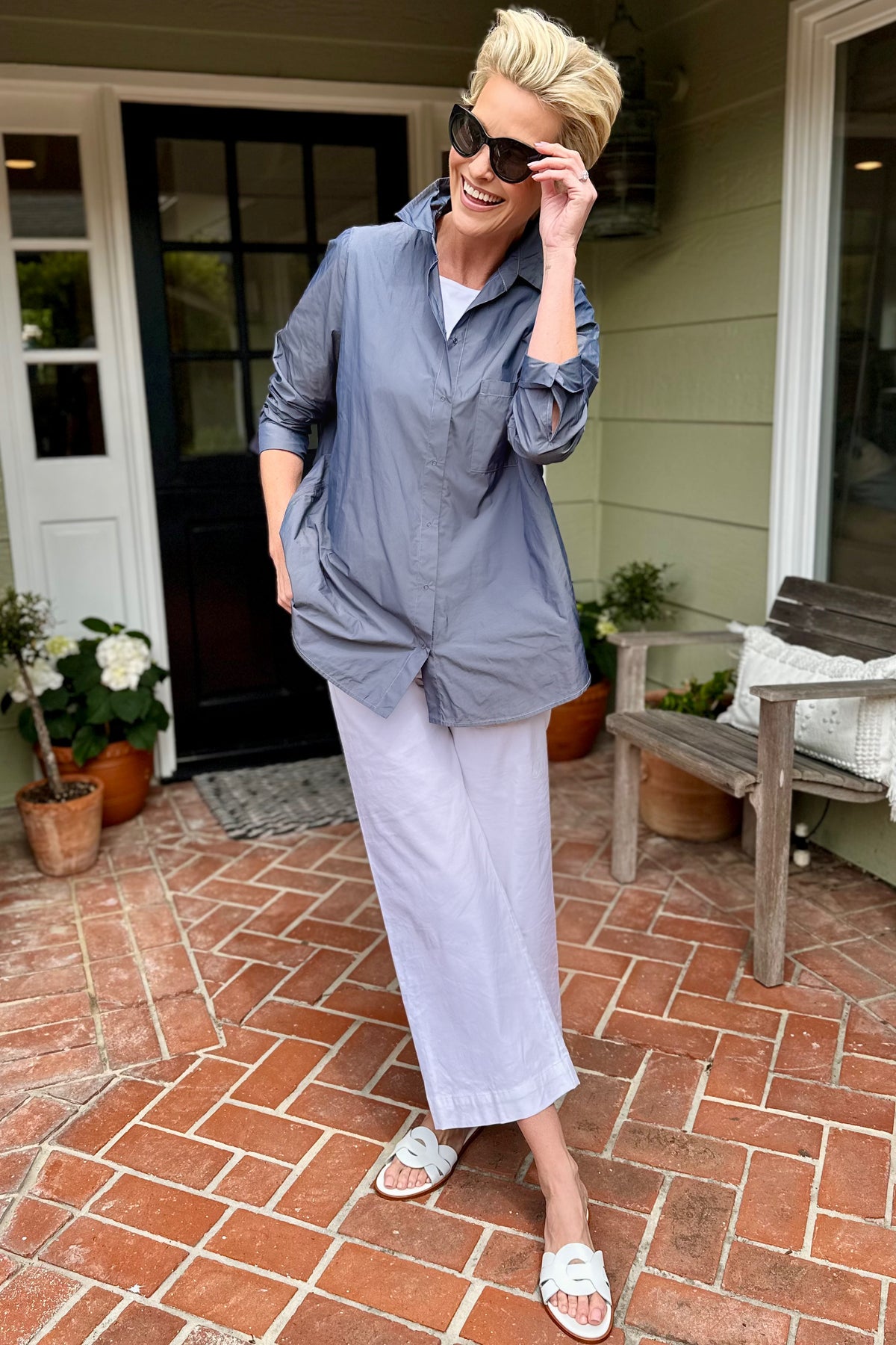 The Katharina Hovman collection from Germany is casual and sporty, but it also has a subtle elegance and shine. Hovman's signature fabric, featherweight tissue taffeta, sets her apart from any other collection. Nicknamed "Travel Taffeta," the weightless fabric finds space in the smallest bag and is ready to wear when unfolded. Please do not iron or steam, seriously! Her fabric is comfortable, easy to care for, and comes in the most gorgeous colors, and her styles are for every day and every occasion!
